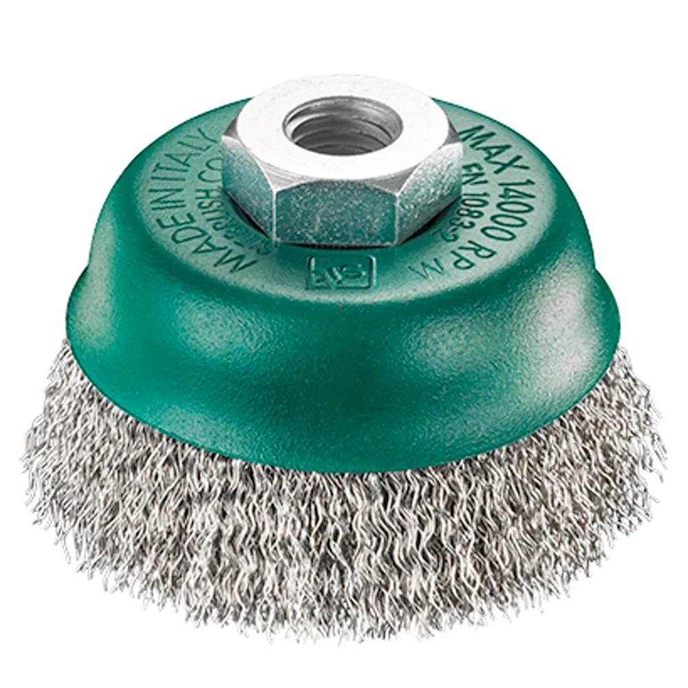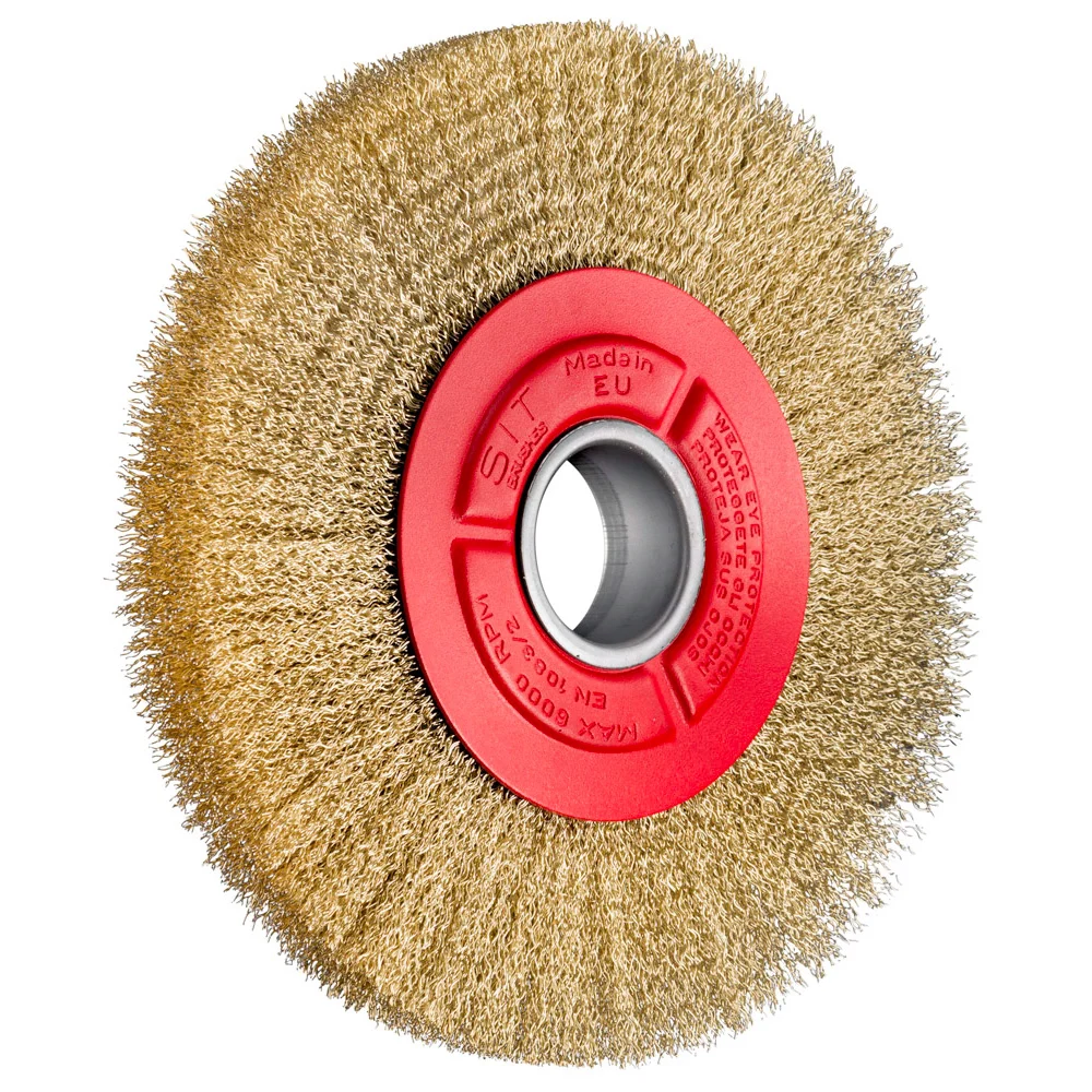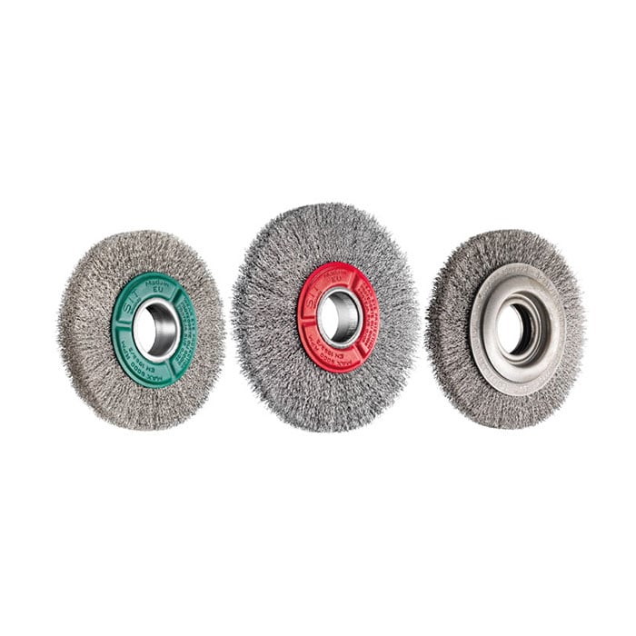 Brosses circulaires en fil d’acier ondulé à haute résistance et très grande densité de filaments. APPLICATION Ébavurage, satinage et polissage des surfaces de...