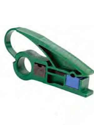 Rangement pour cassettes de remplacement intégré dans l’outil Passage de doigts extra large Cassettes codée couleur, bleue (UTP/STP) et noire (câbles coaxiaux)