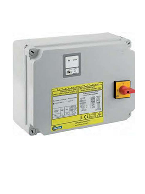 Protection et commande monophasée du moteur/de la pompe pour un démarrage direct. Boîtier en matériau thermoplastique résistant aux chocs et auto-extinguible avec deux...