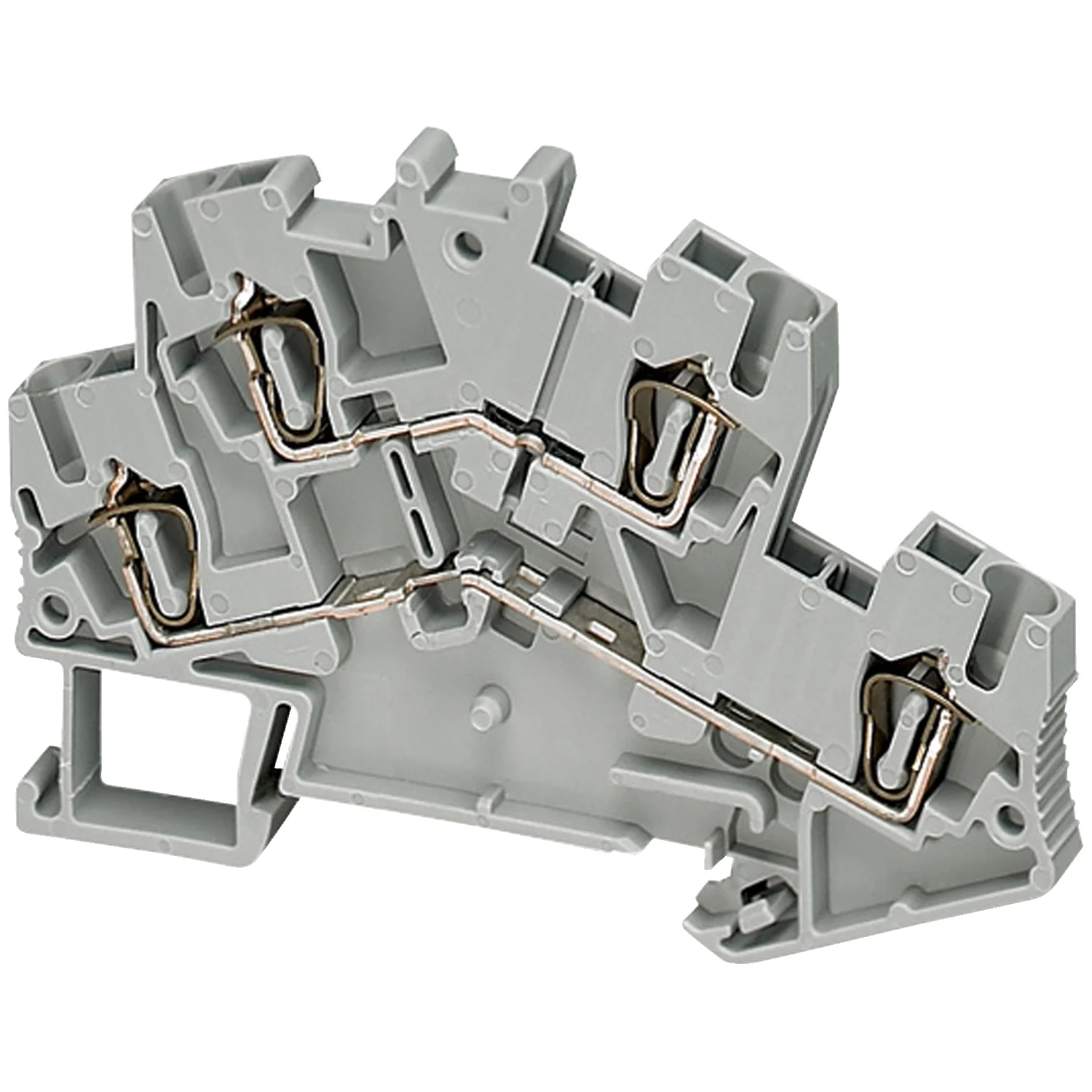 Borne à ressort – 2 niveaux – passant – 4 points – 2,5mm² – gris