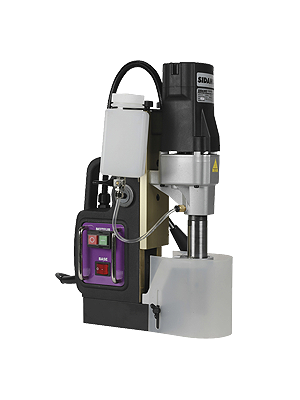 Description – Perceuse magnétique compacte et robuste. – Machine conçue pour percer ou carotter l’acier. – Écran de protection. – Réservoir à liquide...
