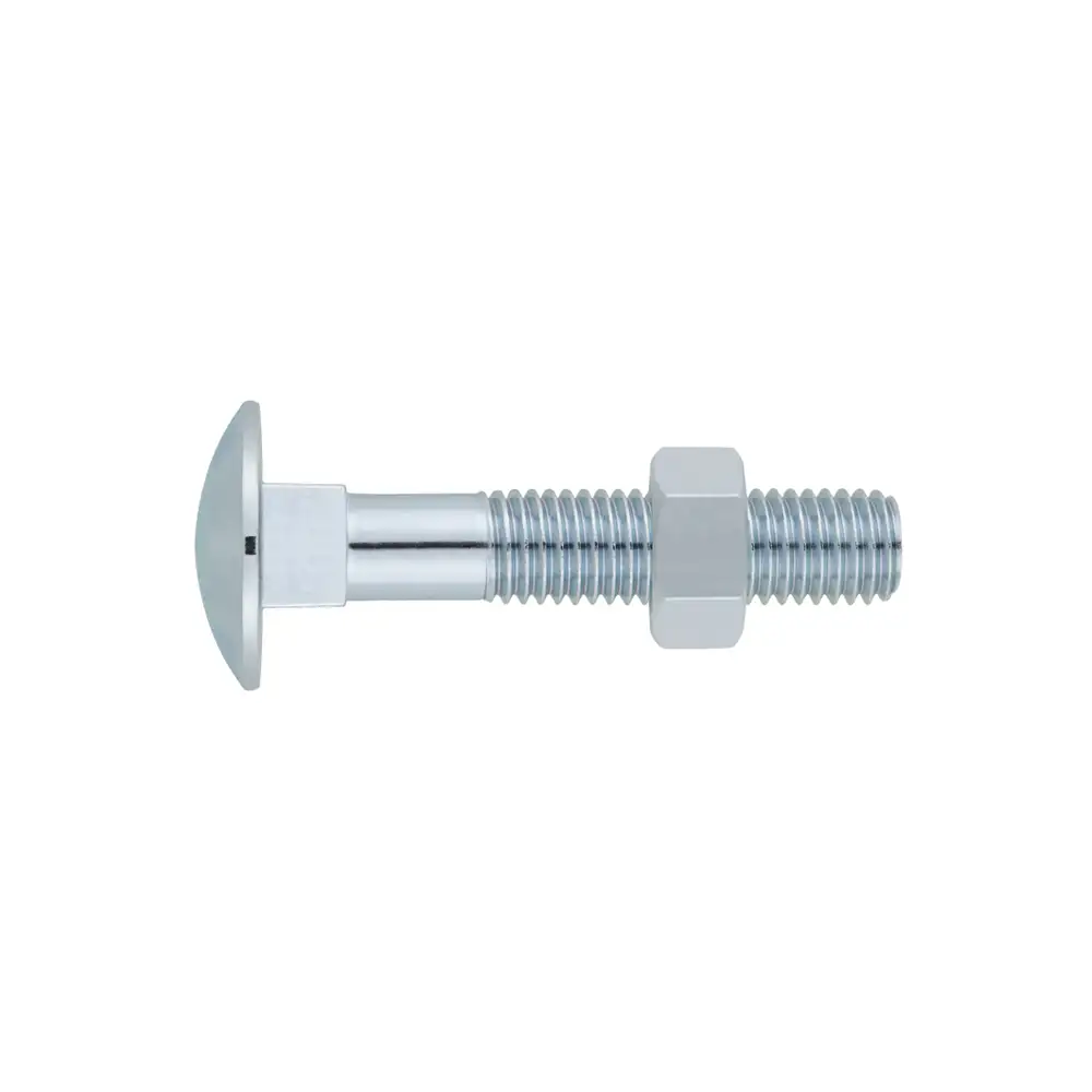 Vis à tête ronde à collet carré incorporant un écrou. Finition zinguée