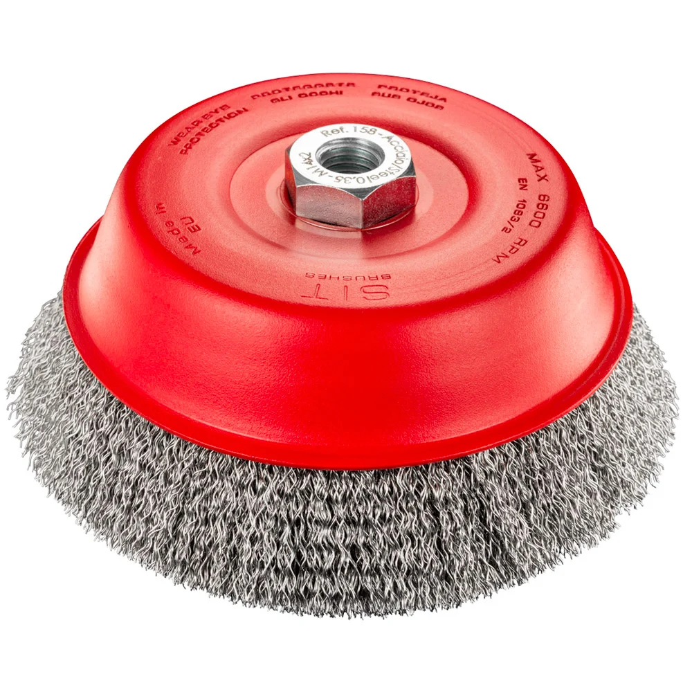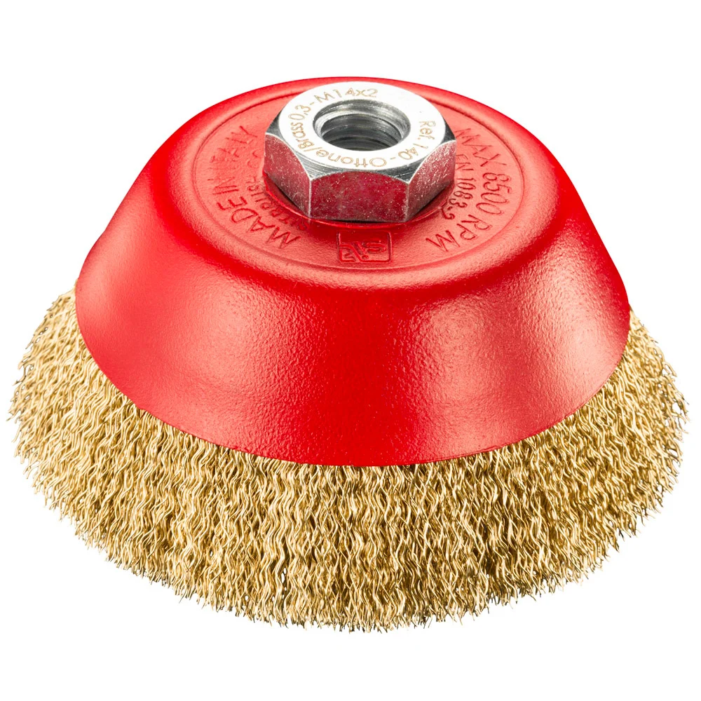Brosses en fil d’acier laitonné ondulé pour le nettoyage des surfaces. La version TE comprend des brosses à coupe plus légères.