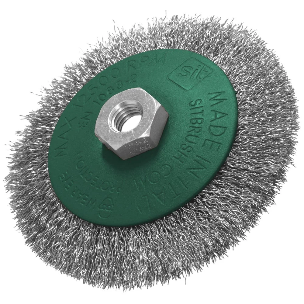 La forme conique rend ces brosses aptes aux travaux “de coupe” sur des surfaces irrégulières, avec des bords, profils et fissures. En acier ondulé de très haute résistance.