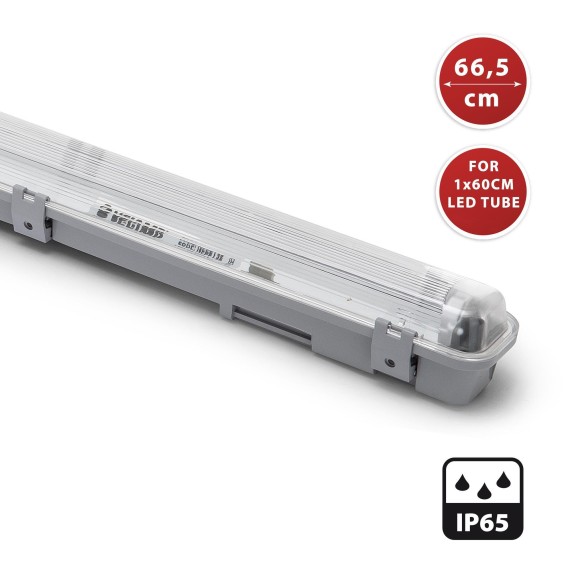Réglette étanche LED VELAMP IP65 pour tube LED, idéale pour l’éclairage en milieux humides ou poussiéreux. Structure robuste, installation facile, faible consommation.