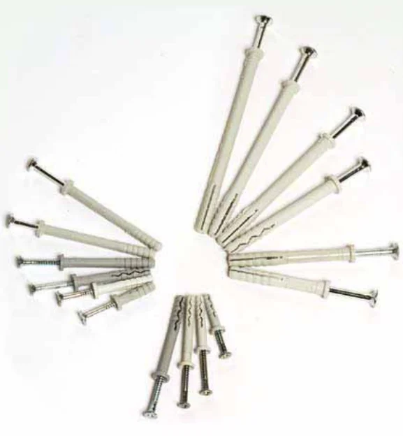 Cheville nylon. Clou acier zingué blanc. Pour matériaux pleins.