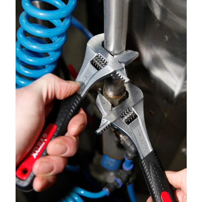 Sa mâchoire à grande ouverture lui permet de remplacer deux clés (6“-8“ pour la référence 017030, 8“-10“ pour la référence 017031, etc…)