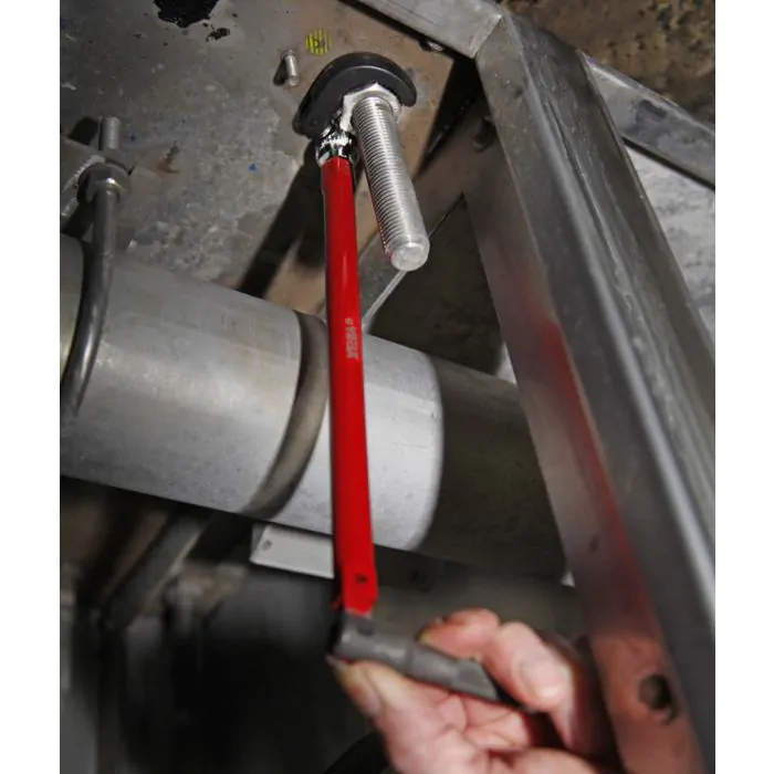 Pour le montage et le démontage des robinets et mitigeurs à fixation avec écrou. Bras creux de 25 cm de longueur. Embout creux pour écrous hexagonaux de 13 mm.