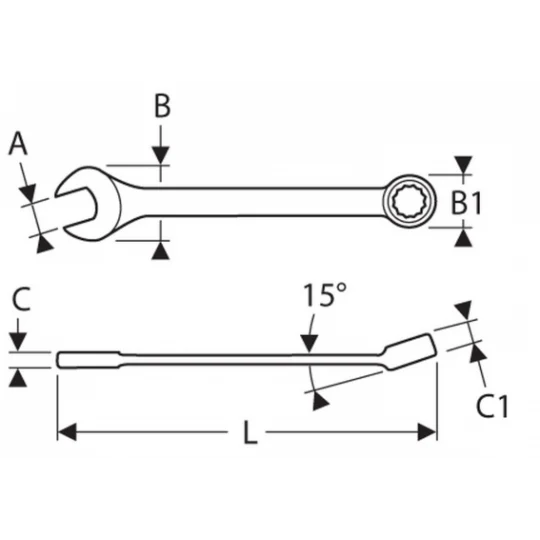 – Fourche orientée à 15° par rapport à l’axe du manche (angle de reprise 30°).
