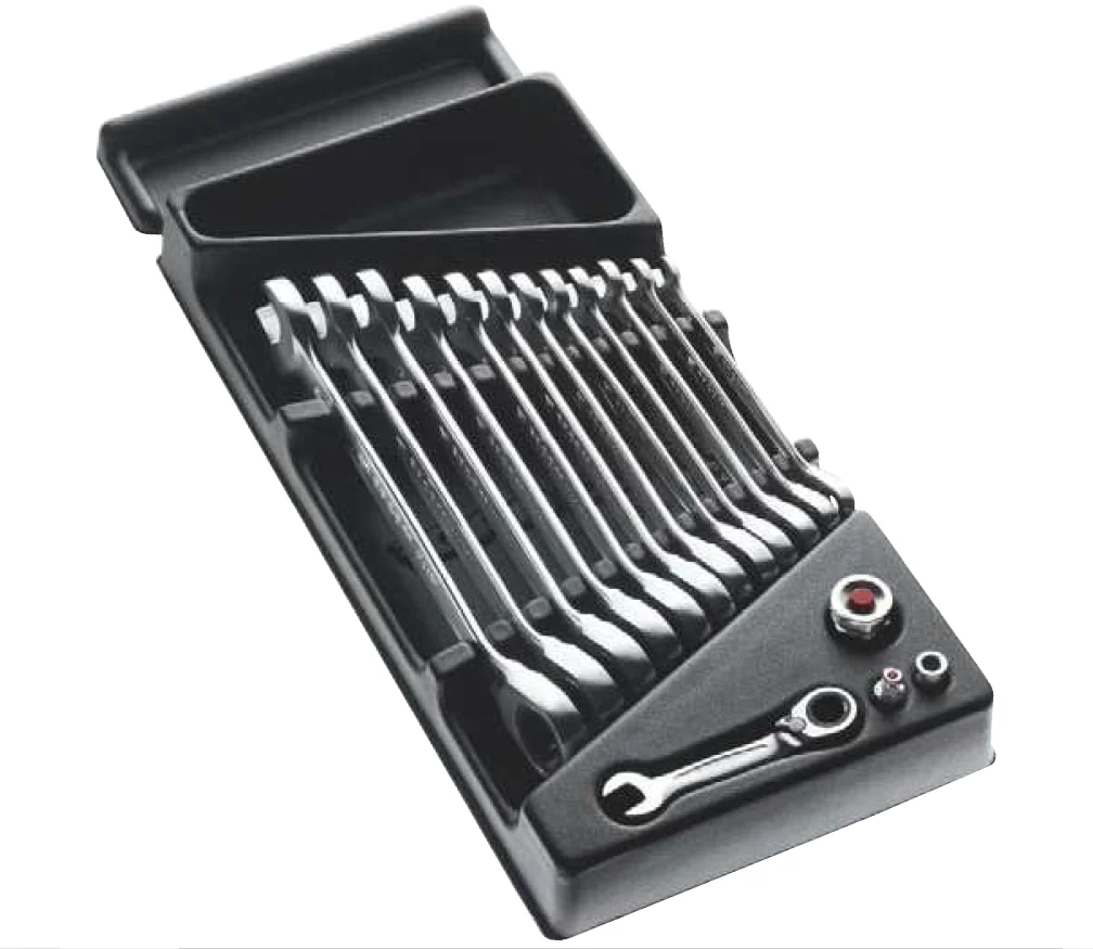 • CLES MIXTES A CLIQUET JEU DE 12 / 8-19MM SUR PLATEAU