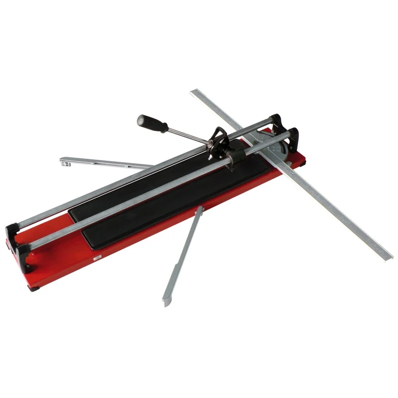 Chariot monté sur roulements à billes, limitant tout frottement.; Réglage et changement des molettes par simple rotation de la poignée.; 2 Embases métalliques avec revêtement élastomère, montées sur ressort, permettant une casse nette du carreau.; Socle et support métalliques renforcés avec pied caoutchouc.; Guidage du chariot par 2 barres en acier chromé très rigides, garantissant un déplacement parfaitement rectiligne et donc très précis du chariot avec une trés bonne visibilité de la ligne de coupe.; Support latéraux de 20 cm (35 cm pour modèle 750) pour soutien de carreaux grands formats, maintient en position fermée par 2 aimants.; Butée et équerre latérales pour coupe de 0 à 60°.; Butées amortisseurs aux 2 extrémités de la course du chariot.