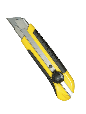 – Blocage de lame par molette crantée pour une meilleure sécurité et précision de coupe