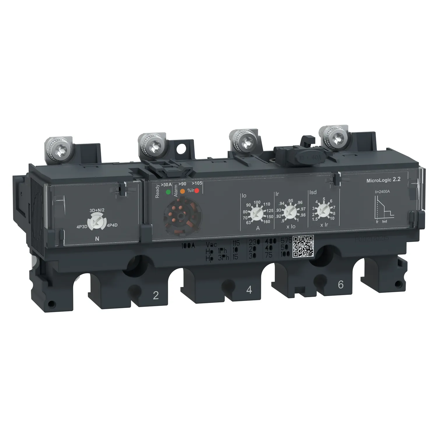 Le déclencheur électronique MicroLogic 2.2, assure la protection, le sectionnement et la commande des circuits de distribution électrique dans les domaines tertiaires et industriels. Couplé au bloc de coupure, le déclencheur électronique MicroLogic 2.2 permet la protection de vos installations électriques. La protection magnéto-thermique sera intégrée dans le volume du bloc associé en fonction du pouvoir de coupure. Les déclencheurs électroniques MicroLogic 2.2 sont des appareils à composer, ils constituent les paramètres de réglages des protections et doivent être associés aux blocs de coupure portant les performances électrotechniques. Ces déclencheurs sont de 2 types, magnéto-thermique ou électronique « MicroLogic » avec des fonctions de mesure et communication. Vous trouverez aussi des notices simplifiées de montage et accessoires de raccordement permettant le montage.
