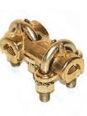 Raccord en Té en laiton pour conducteur de 10 à 70mm², étriers en acier électrozingué.