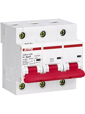 Descriptions: Disjoncteur miniature Série: HDB3w Intensité nominale: 100A Pôles: 3 pôles Pouvoir de coupure: 10kA Courbe de déclenchement: courbe C