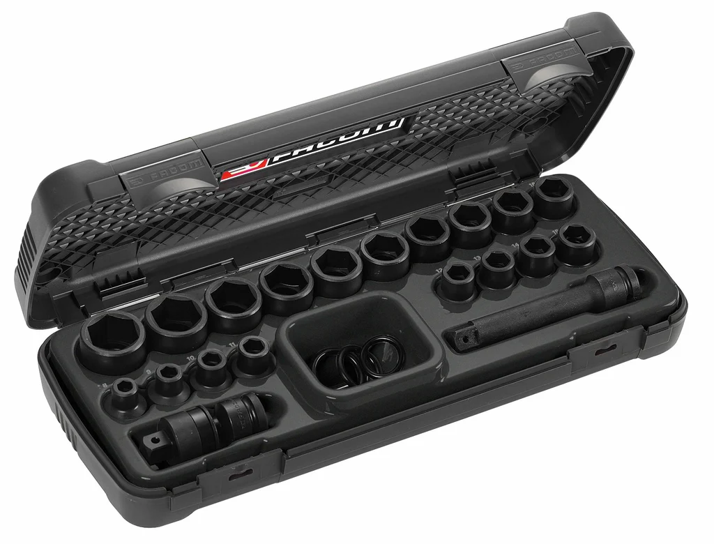 • 12 x douilles – N.3/8″A – 7/16 – 1/2 – 9/16 – 5/8 – 11/16 – 3/4 – 13/16 – 7/8 – 15/16 – 1P – 1P1/16.