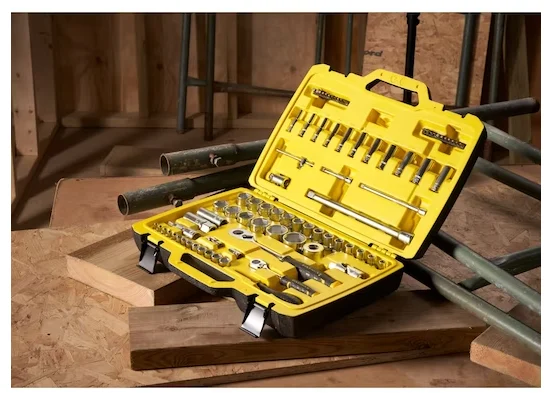 L’ENSEMBLE COMPREND 1 x cliquet 1/4 » 120 dents, 13 x douilles 1/4 », 11 x douilles longues 1/4 », 2 x rallonges 1/4 », 1 x tournevis 1/4 », 22 x embouts 1/4 », 1 x adaptateurs d’embout 1/4 », 1 x cardan universel 1/4 », 1 x poignée coulissante 1/4 », 1 x cliquet 120 dents , 21 x douilles 1/2 », 2 x rallonge 1/2 », 1 x cardan universel 1/2 », 2 x douilles à bougie 1/2 » et 1 x adaptateur 3 voies 1/2 »