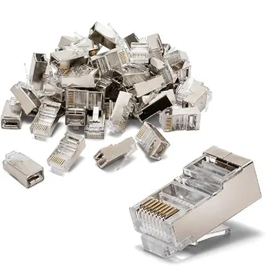 DESCRIPTION 100 connecteurs RJ45 pour câbles torsadés blindés rigides ou flexibles, compatibles avec les câbles réseau ronds ou plats de 24 à 26...