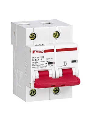 Descriptions: Disjoncteur miniature Série: HDB3w Intensité nominale: 125A Pôles: 2 pôles Pouvoir de coupure: 10kA Courbe de déclenchement: courbe C
