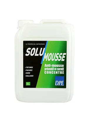 SOLU’MOUSSE est un produit anti-mousse biodégradable concentré, curatif et préventif, pour la destruction des mousses, lichens, champignons et algues sur toitures, façades, murs...