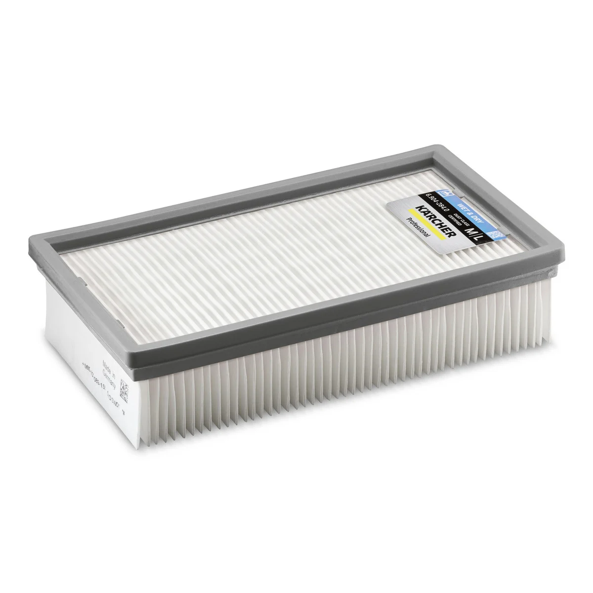 Filtre plissé plat (PES) en polyester non tissé, imputrescible, testé BIA-C classe poussières M. Idéal pour l’humidité et les matériaux abrasifs. En standard pour le NT 72/2 Eco Tc. En option pour les NT 65/2 Eco/Eco Me/Eco Tc