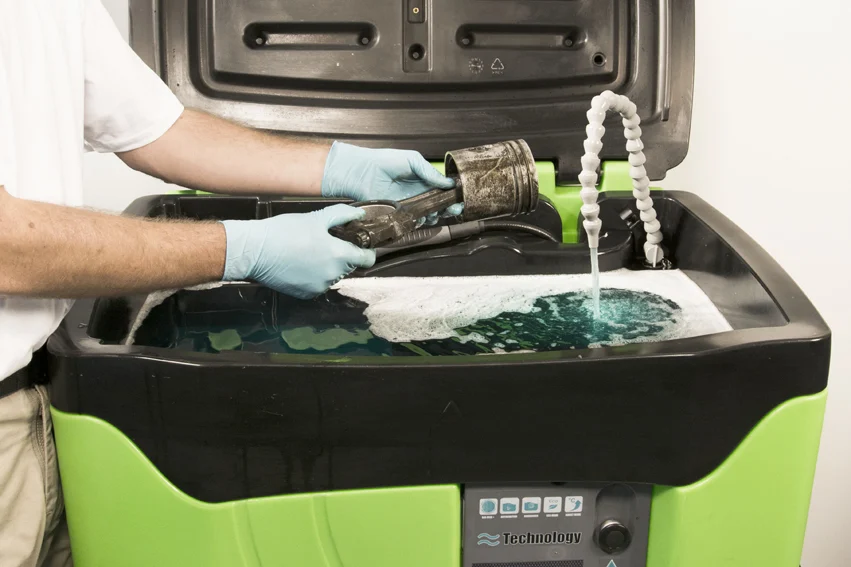 En raison de la solution de lavage efficace, il n’est pas nécessaire de chauffer le liquide avec des résistances élevées, comme dans les machines à laver les pièces traditionnelles. L’appareil maintient la température du liquide à environ 38 degrés Celsius.