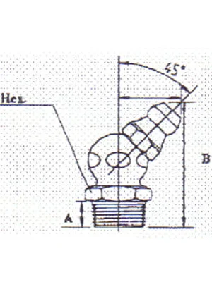 Gamme de graisseurs hydrauliques coudés 45° normes DIN 71412 au filetage métrique, gaz et américain disponibles par boite de 100, par blisters en acier zingué type H2.