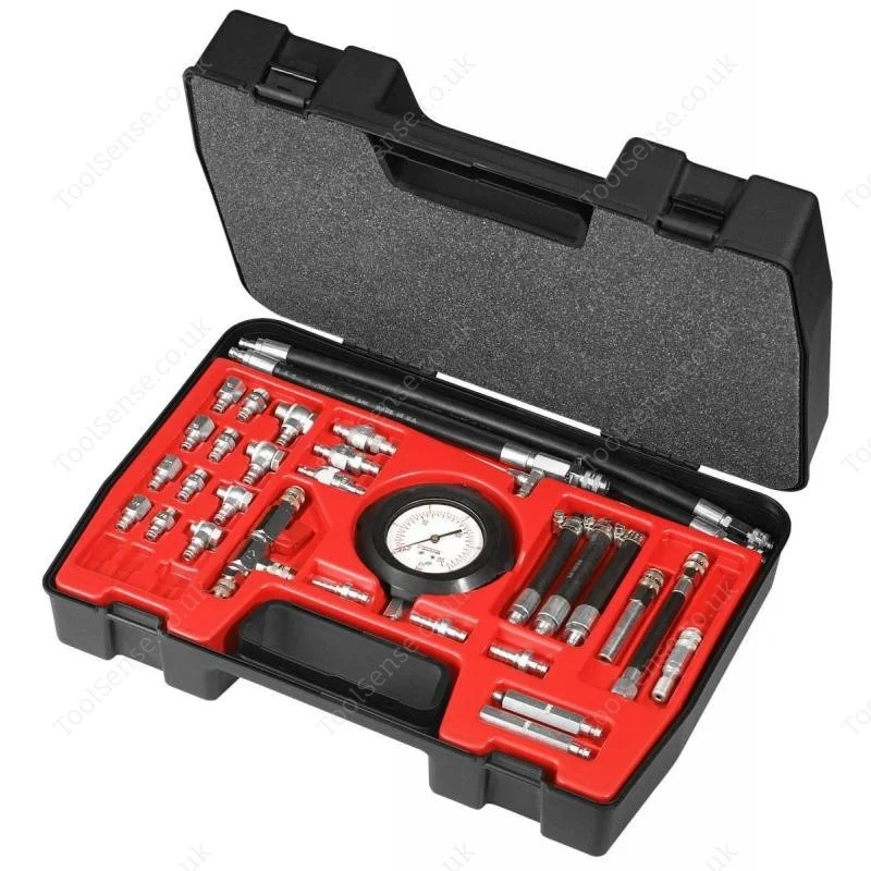 Teste les injecteurs de carburant multipoints. Plage: 0 à 10 bars. Mesures: – pression de la pompe à essence. – pression du système. – pression...