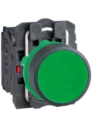 Bouton poussoir complet affleurant vert dia22 ressort de rappel 1N0 + 1NF non marqué