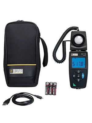 Le luxmètre CA 1110 mesure les éclairements de toutes les sources lumineuses (LED, Fluo. etc.) jusque 200 000 lux en conformité de la classe C de la norme NF C 42-710.