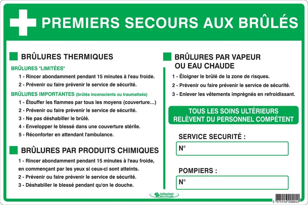 PANNEAU 350X500MM « GUIDE DES PREMIERS SOINS AUX BRULES »