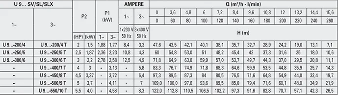 | U 9SV-550/10T | 50 | 16 | 113 | 5,50 |