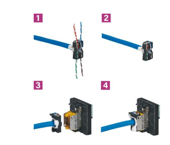 Avec connecteur à connexion rapide sans outil – Repérage T 568 A et T 568 B avec codes couleurs