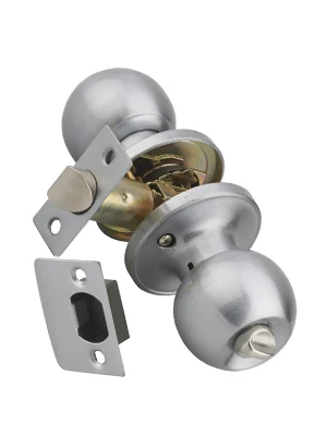 Pommeau extérieur en acier embouti avec cylindre de sûreté à goupilles. Pommeau intérieur en acier embouti avec bouton de condamnation.