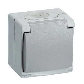 Mureva – prise de courant 2P+T NF – gris – en saillie – IK07 IP55