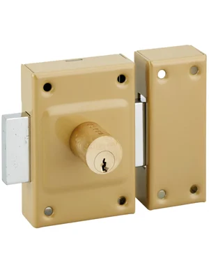 Description : Coffre acier cambré. Gâche acier cambré. Pêne acier chromé. Cylindre laiton à 4 goupilles. Entrée acier zingué. 3 clés en acier...