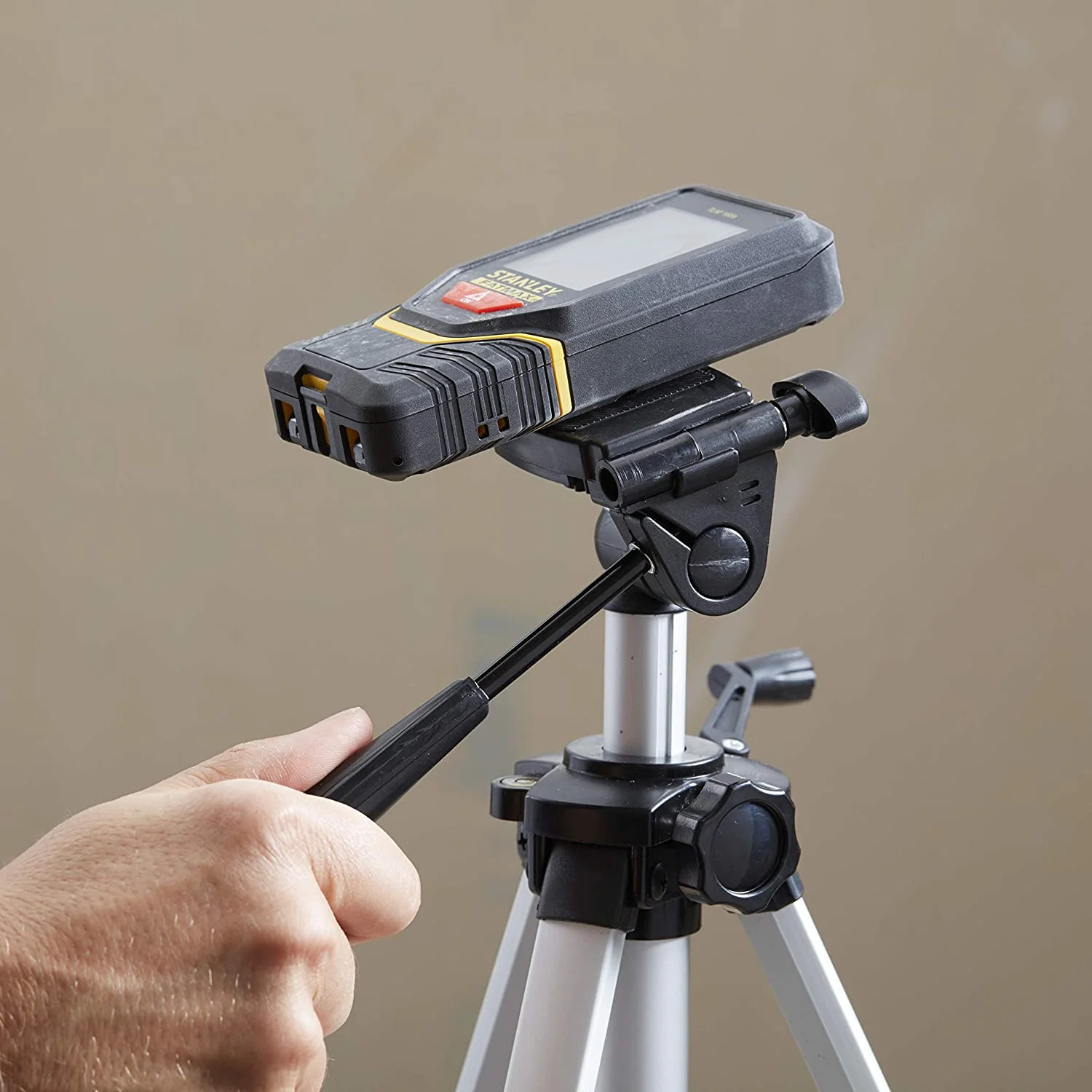 Et, si vous n’avez pas le temps ou la possibilité de noter les résultats obtenus, les cinq derniers sont mémorisés. Par ailleurs, le TLM165S Mesure laser BLUETOOTH 50 m STHT1-77140 FATMAX a la particularité d’être équipé du Bluetooth. Il est ainsi possible de le connecter à votre smartphone via l’application STANLEY SMART CONNECT qui lui apporte plus de fonctionnalités comme la possibilité de mesurer des plans, de les transférer ou de calculer les cotes de ceux-ci en toute simplicité. Ce télémètre connecté est ainsi bien plus qu’un simple appareil de mesure. Son écran couleur tactile en fait un outil très intuitif. Le télémètre est fourni avec son étui de protection. Filetage 1/4″ pour permettre de monter le TLM165S sur un trépied. Sa butée extractible permet de réaliser des mesures à partir d’angles.