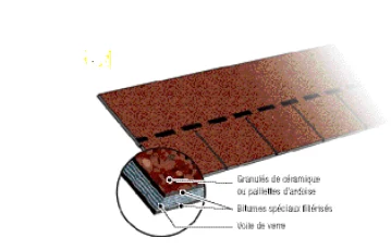 Le bardeau Versite SBS se présente sous forme de plaques rectangulaires semi-rigides, d’épaisseur 3 mm environ suivant l’autoprotection et comportant 5 parties battantes ou “jupes” par mètre.
