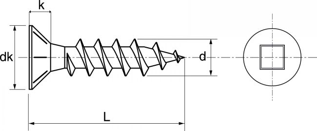 Vis Pour Bois Aggloméré Tête Fraisée Carrée Striée Sous Tête (TF Carrée)