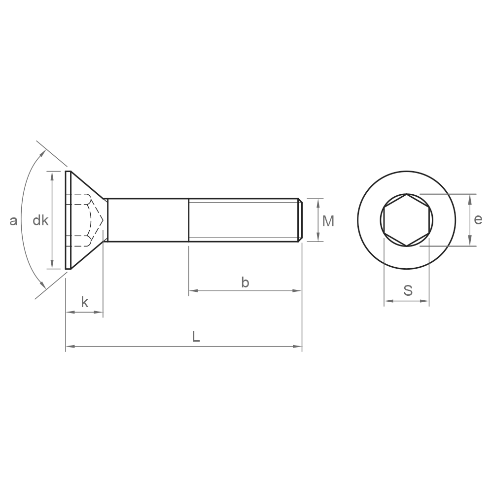Il s’agit d’une vis à tête fraisée à six pans creux équivalente à la norme ISO 10642, fabriquée en qualité 10.9 et recouverte d’un revêtement noir.