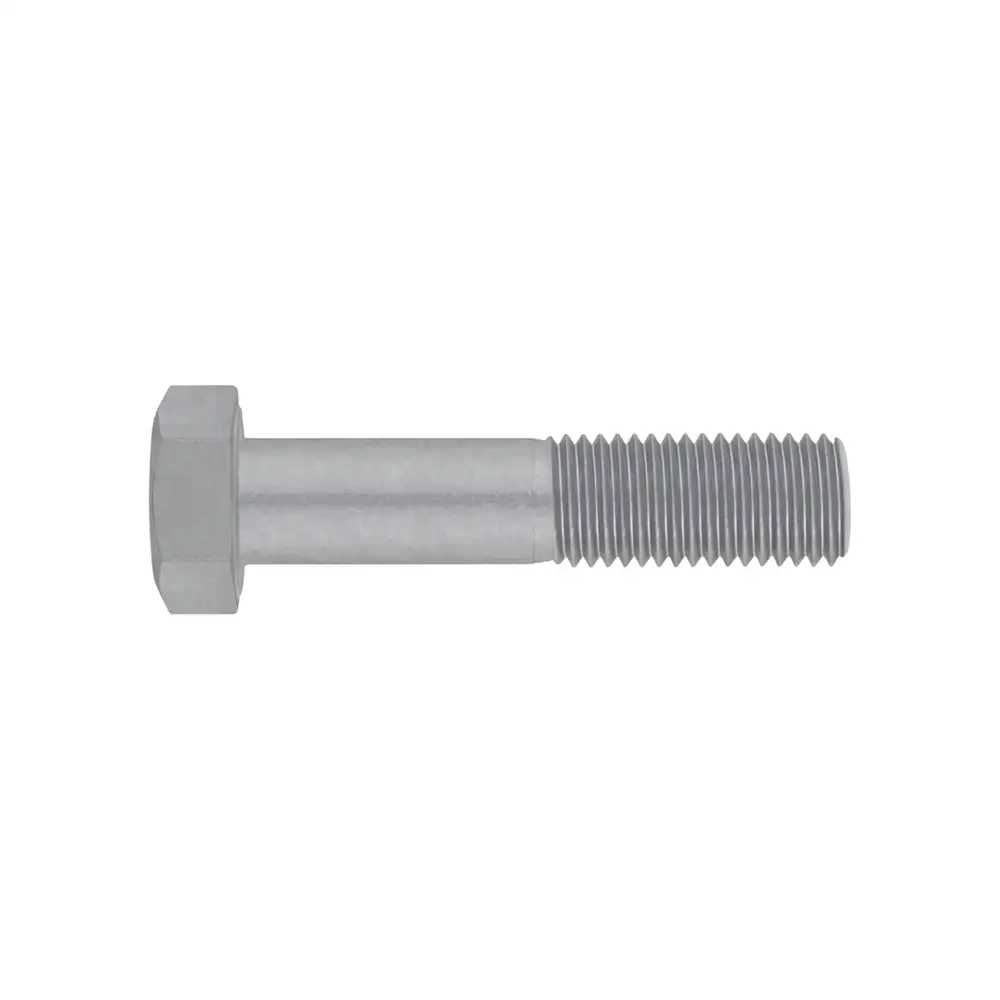 Il s’agit d’un boulon hexagonal à filetage ISO, équivalent à l’ISO 4014, galvanisé à chaud (HDG), fabriqué en qualité 6.8. Il présente un demi-filetage et est utilisé pour les assemblages qui doivent résister à des charges importantes.